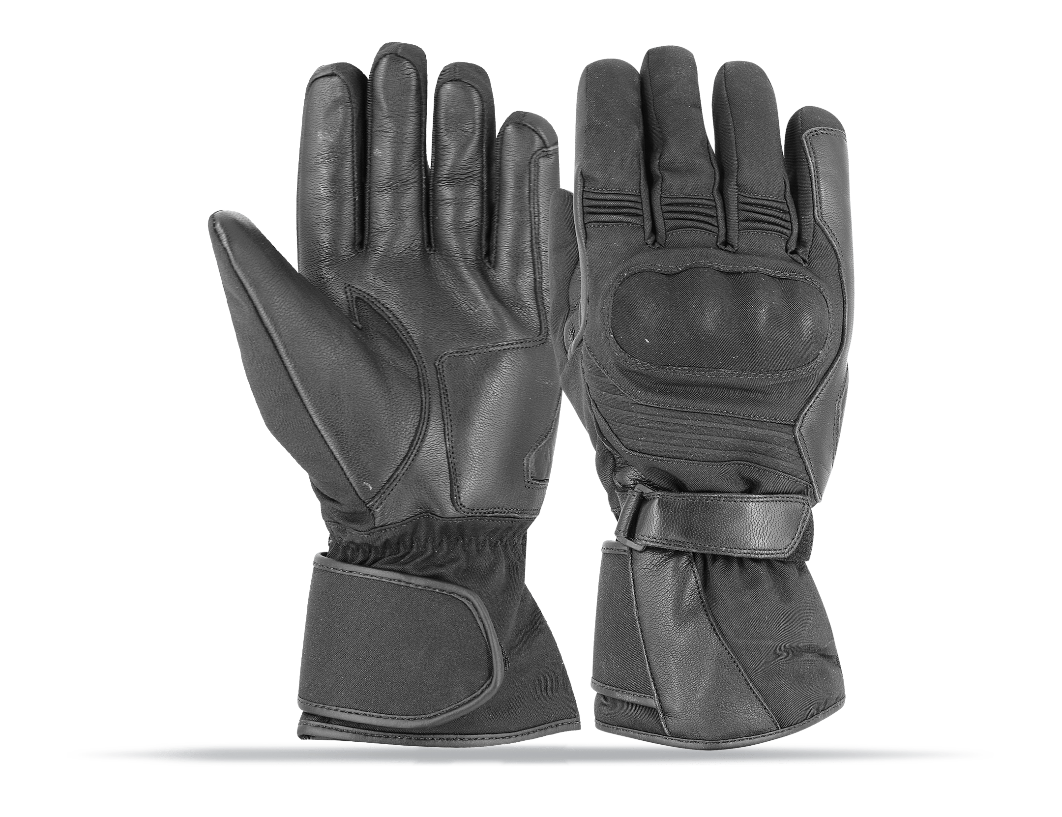 Motorbike Winter Front:-Goat Skin Leather Back;-Strech Material Breathable inside Hitex WaterProof.